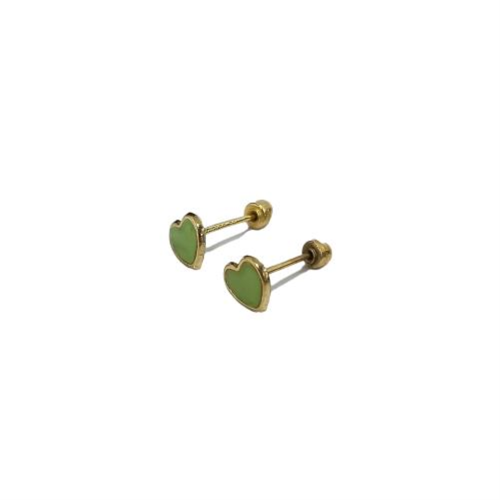 Par De Broqueles Corazón Esmaltado Oro, 10 K, 0.20 Grs